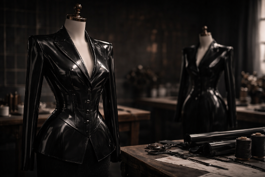 Travailler le latex en couture nécessite une maîtrise totale du geste, de la coupe, de la tension, et du silence.